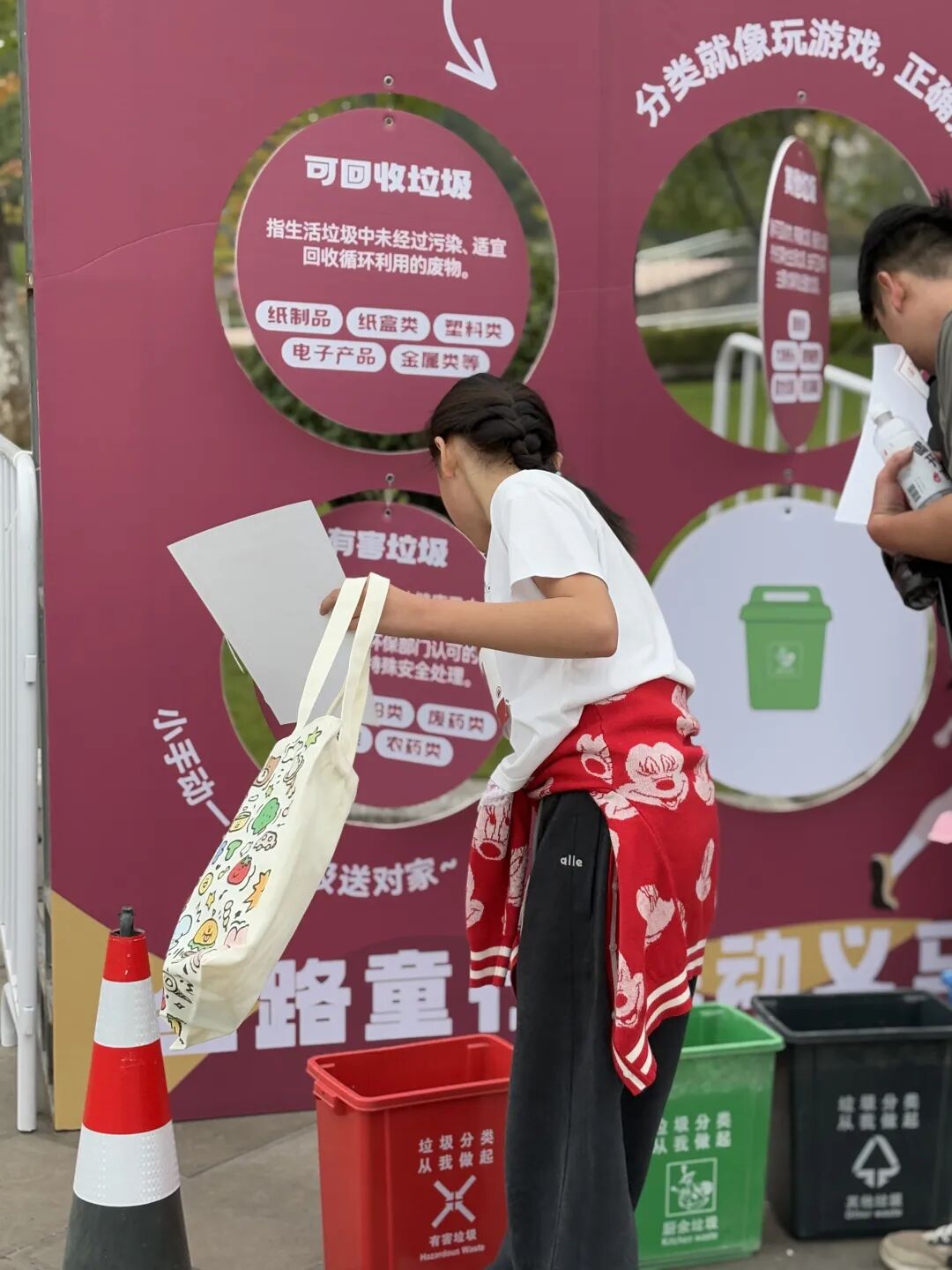 活动现场,小选手们手持垃圾袋、垃圾钳,随手捡拾赛道周边垃圾,成为流动的“生态小卫士”。终点区域设置的“垃圾分类互动区”前人头攒动,孩子们通过互动,学习可回收物分类知识,把活动中兑换的绿植盆栽带回家,延续环保行动。