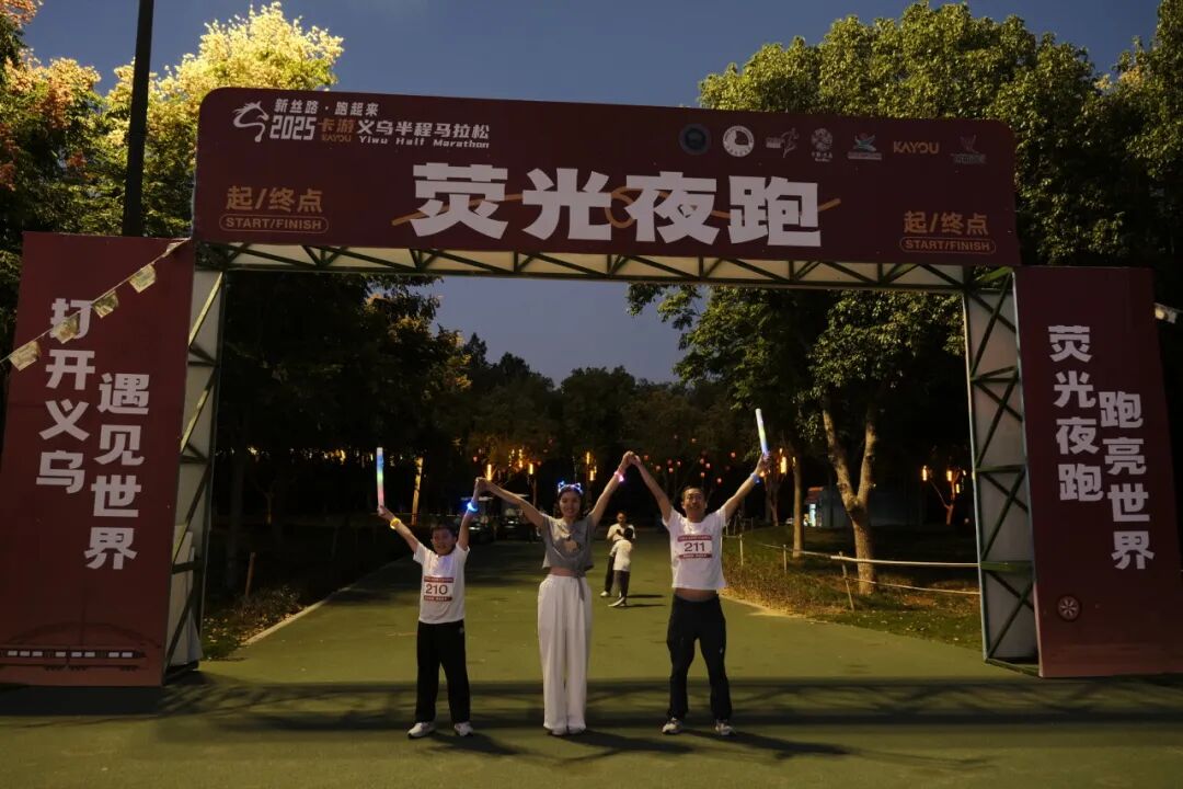 作为本次“打开义乌,遇见世界”义马系列活动,本次荧光夜跑深度融合全民健身理念,吸引了不同年龄段的参与者踊跃加入。从活力满满的青少年到携手同行的亲子家庭,再到经验丰富的跑团成员,大家穿着荧光服,手持荧光棒,化身 “夜空中的流动星光”,沿着植物园3公里绿道前行。