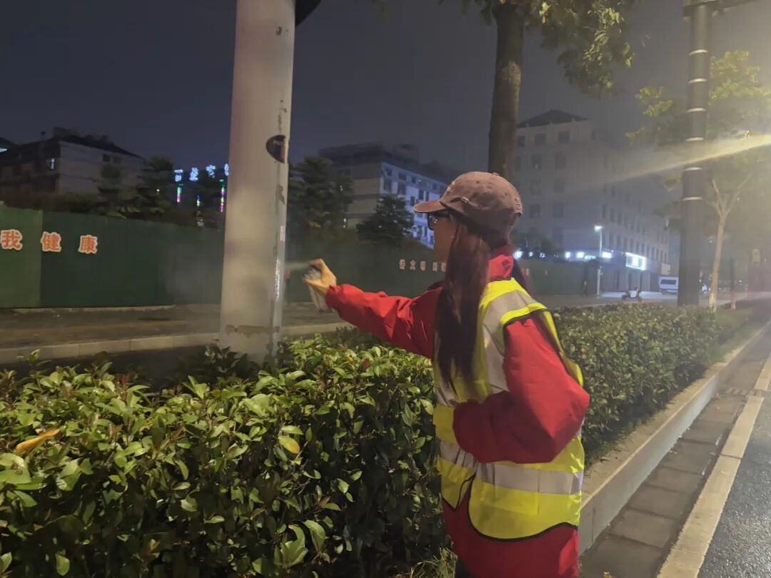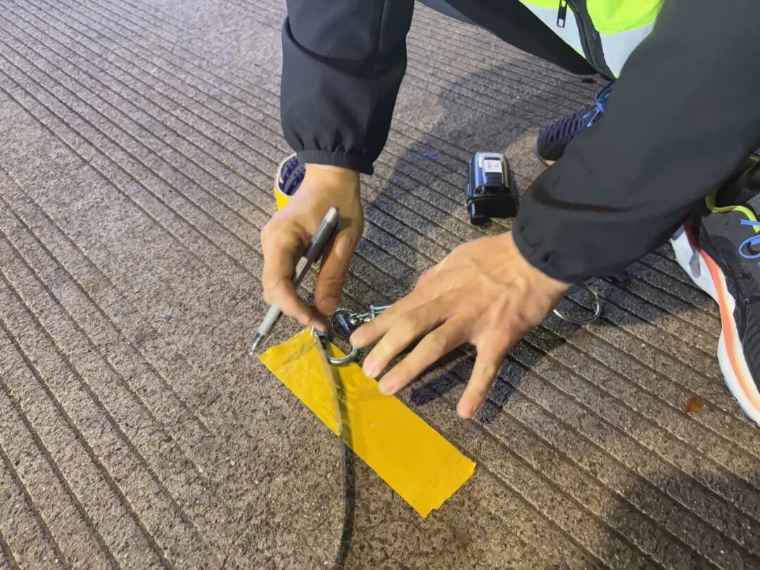 当晚,在对300米的标定路线进行测量校准后,丈量员对本次赛事起点梅湖体育中心做好 “起终点” 标记,正式开启赛道丈量工作。