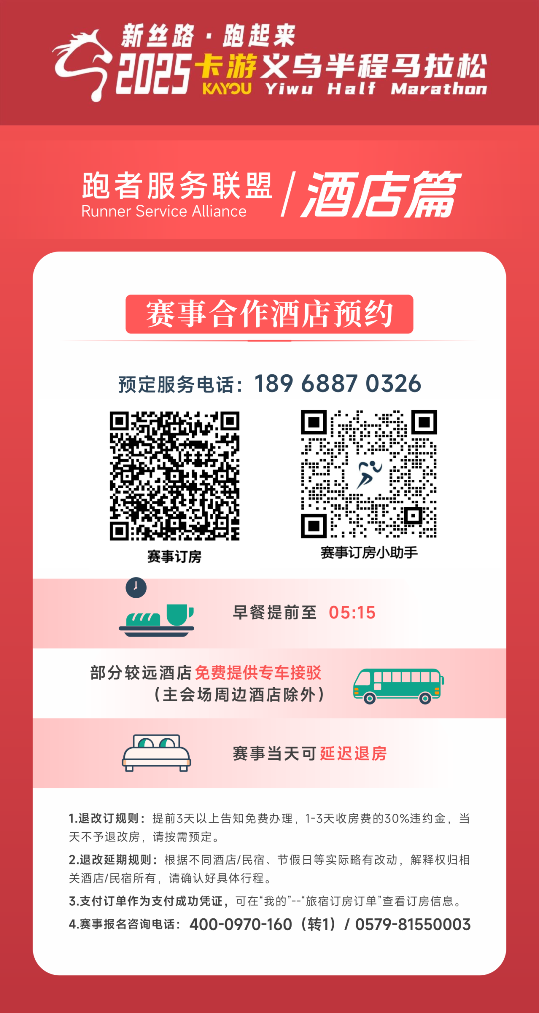 2.比赛当日早餐提前至6点开始提供;