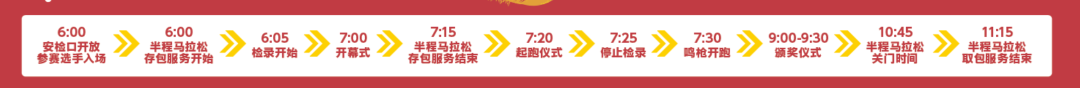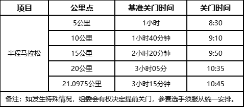 4.半程马拉松项目选手需在11:15前取回自己寄存的衣物;