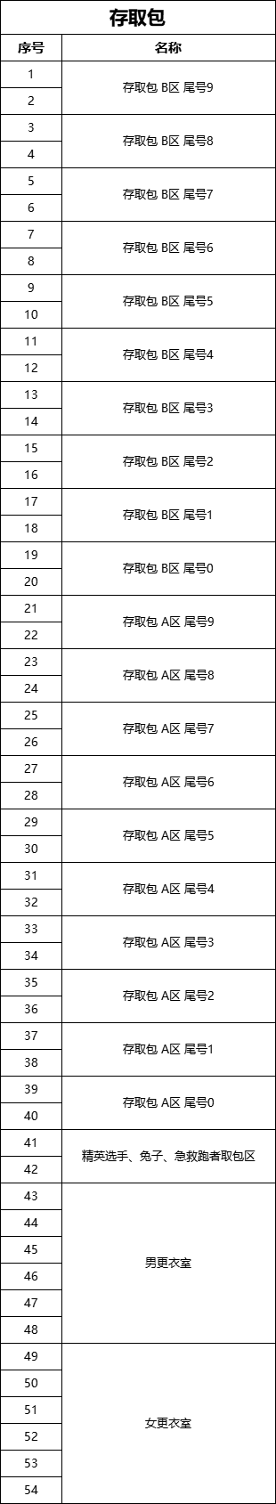 建议先存衣,6:00开放存衣服务,7:15停止存衣,本次存取包按照“A""B"分区,号码布尾号进行寄存,请您到场后,按照号码布指示找到您的存衣车,尽快存衣。贵重物品(如手机、现金、身份证等)请您随身携带,请勿寄存。